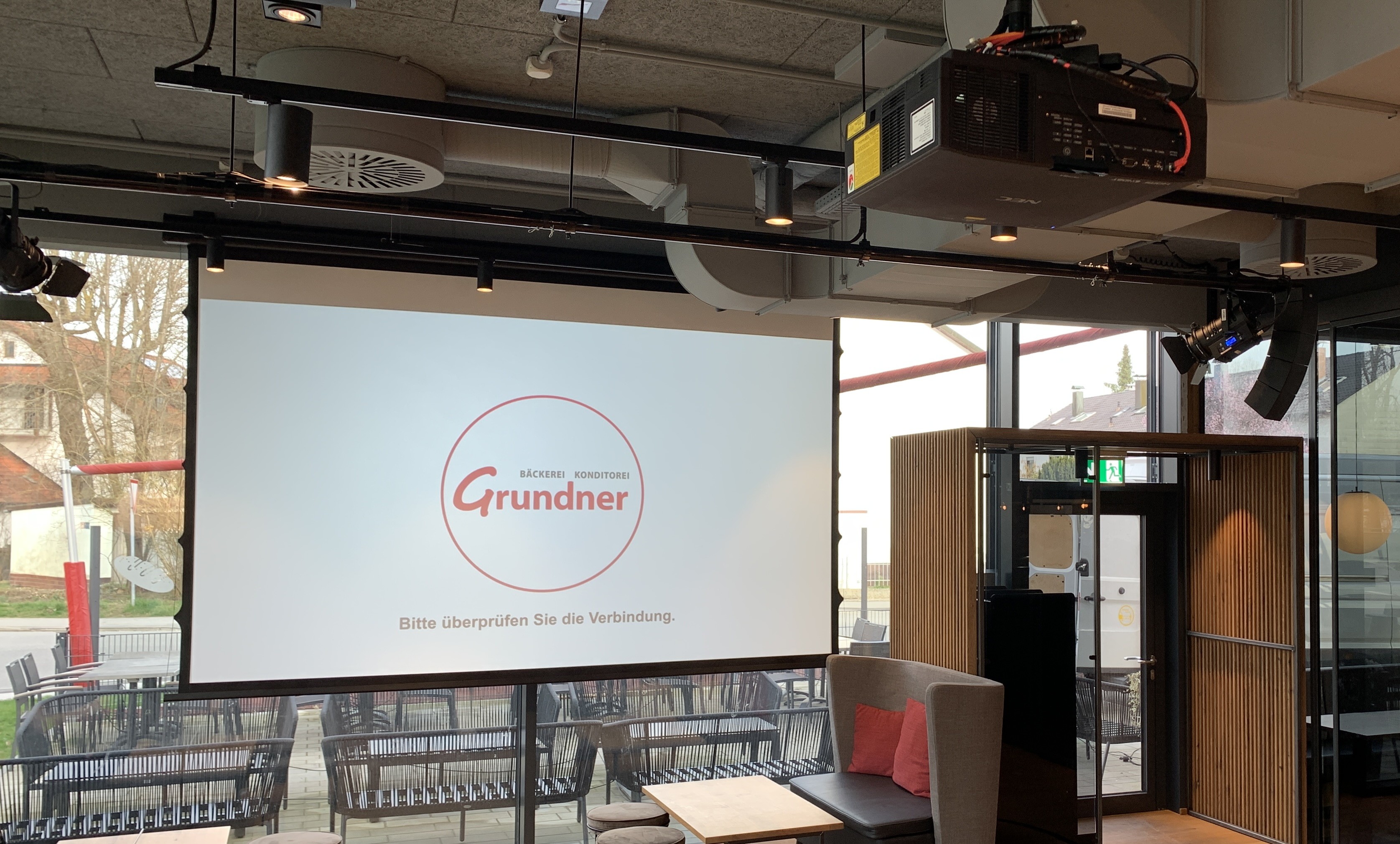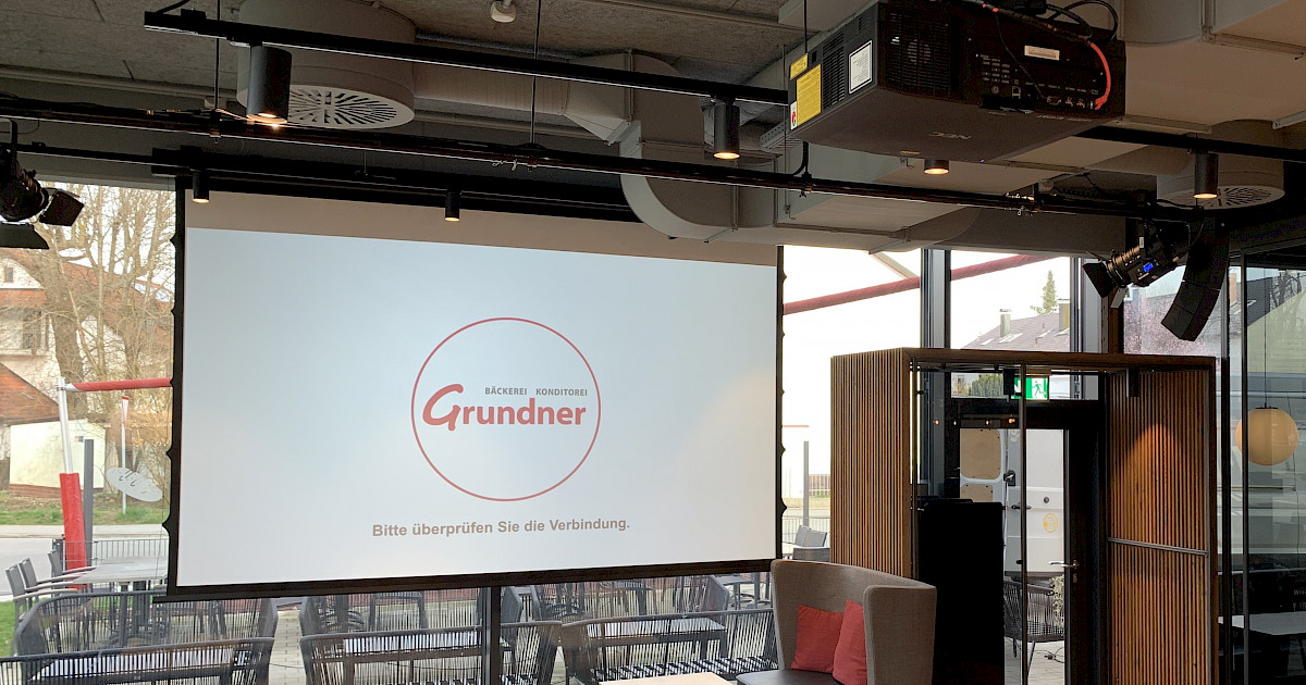 Die Traditionsbäckerei Grundners hat ihren Standort erweitert – und das nicht nur mit einem modernen Gastrobereich, sondern auch mit einer kleinen Bühne für Veranstaltungen. Damit das Konzept funktioniert, durfte Blue Medientechnik die gesamte Medientechnik planen und umsetzen.